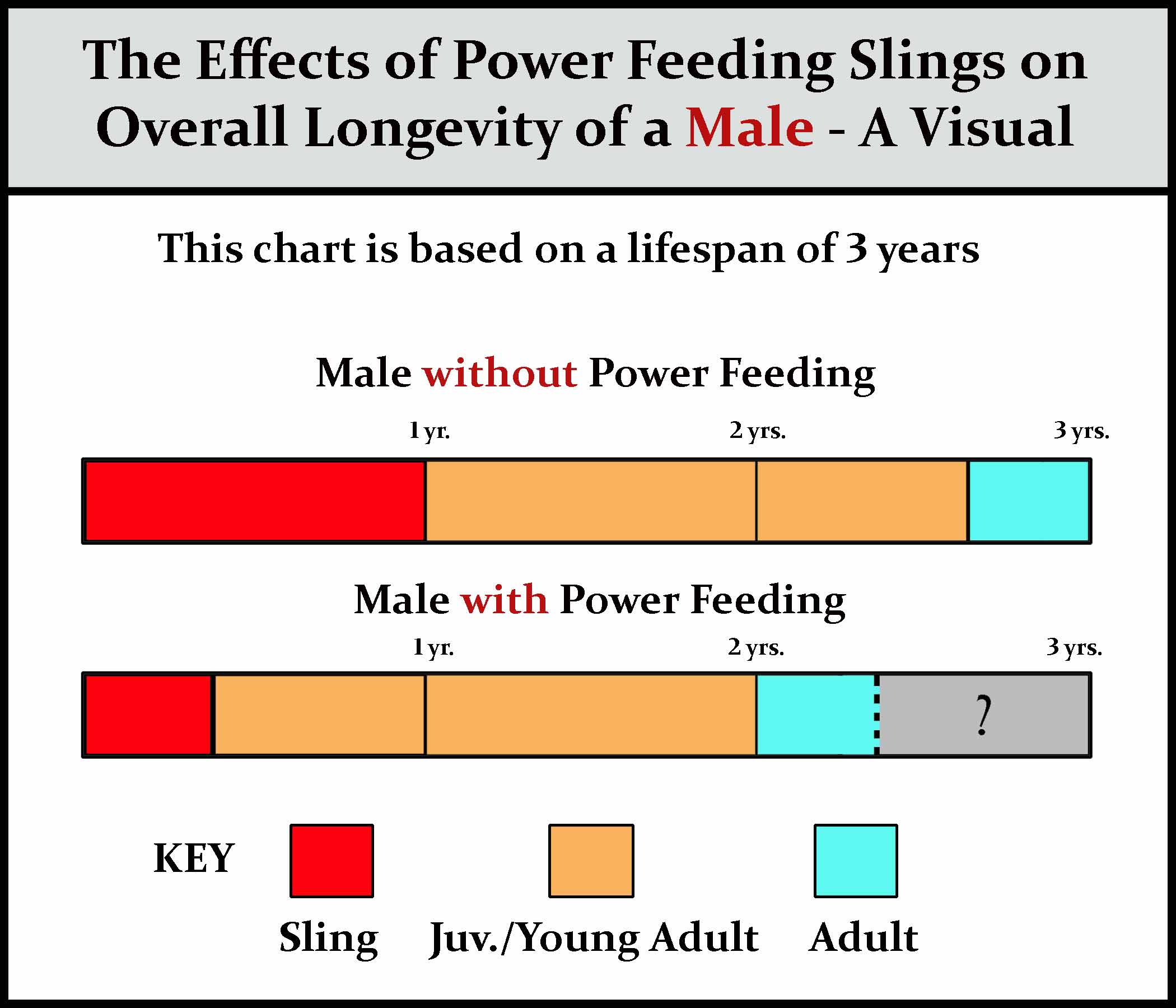 And, as I tried to show in those charts, if you power feed a sling, how much time are you REALLY decreasing its lifespan? If a person doesn’t want to try it, honestly, that’s TOTALLY fine. I completely understand. However, don’t start judging folks who decide to get that spider out of its fragile sling stage a little faster.