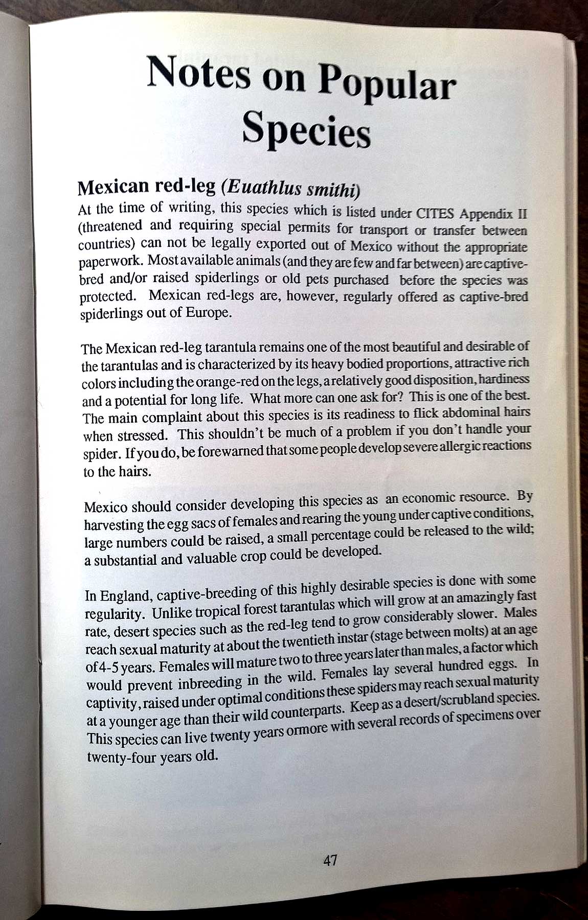 • Between 1984 and 1991, one Mexican company responsible for shipping tarantulas into the US reported exporting 200,000 spiders in a 10-year period. (p. 157)