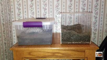 Once they are ready to go into their adult enclosures, more thought can given about decor. It’s important to remember that they will likely do quite a bit of webbing, so decorations that offer anchor points are advisable. I’ll be trying out spider wood in my adult enclosure, as this decoration not only looks aesthetically natural, but its many twisted branches offer a plethora of hiding spots and anchor points. At this point, they do not require moist substrate and do well completely dry. Include a water dish and don’t bother with overflowing it. There is a good chance that your spider will web up the dish. Webbing can quickly wick away water, leaving a dish bone dry in hours. If you notice webbing on the dish, you can trim it away with scissors or use a second dish placed in the first. 2-oz souffle cups work well for this.