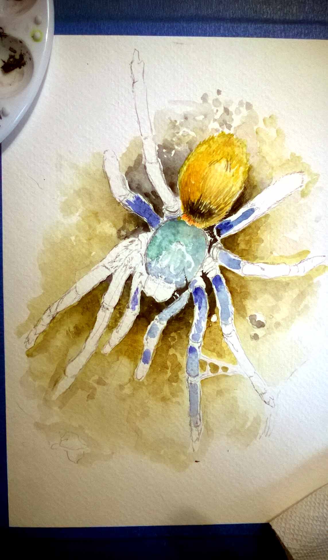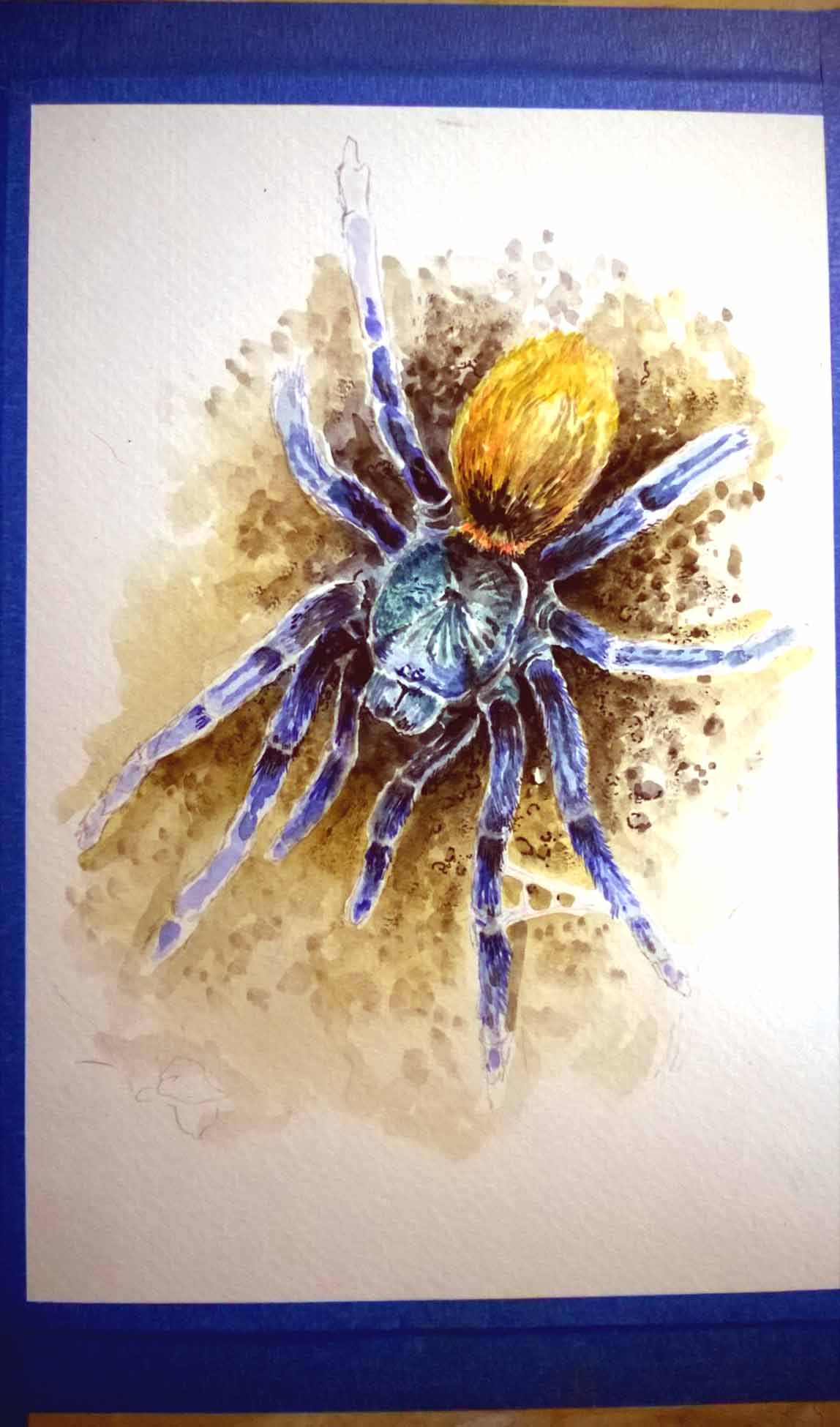 When I first began researching what type of tarantulas I might get to start my collection, I encountered a photo of a spider so colorful and beautiful, that I was at first convinced that it was a clever Photoshop creation. With its shimmering blue legs, metallic aqua carapace, and stunningly vibrant orange abdomen, this animal looked too striking to be real. A quick search revealed this amazing specimen to be the Chromatopelma cyaneopubscens, common name Greenbottle Blue or GBB for short.