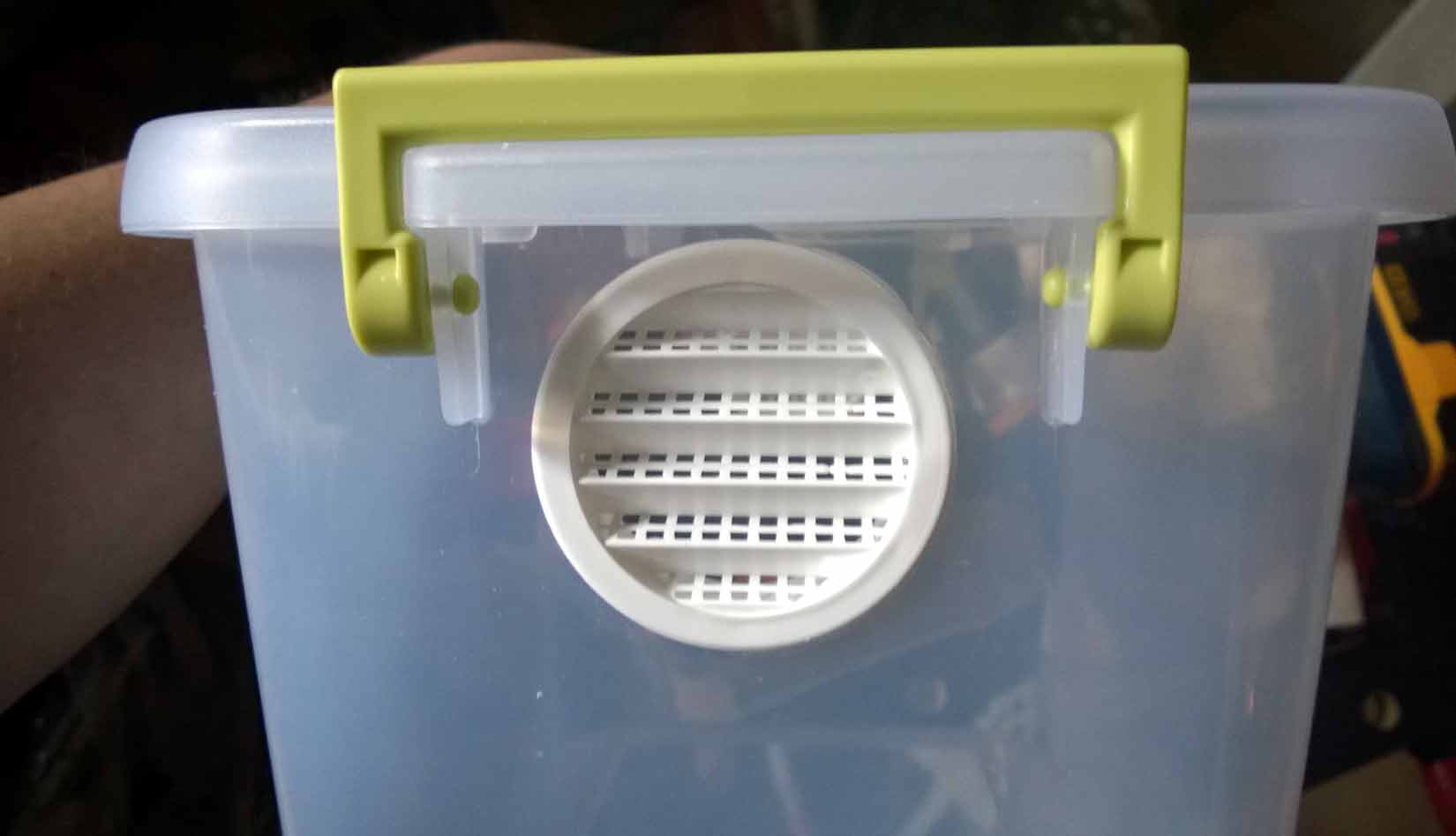 The vents have been installed on opposite end of the Sterilite enclosure. Vents should be close to the top.